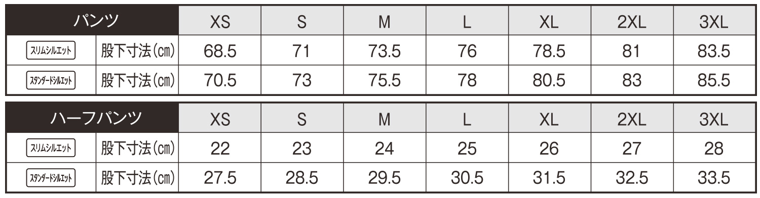 【カスタムオーダー】ウォームアップ (パンツサイズ寸法)